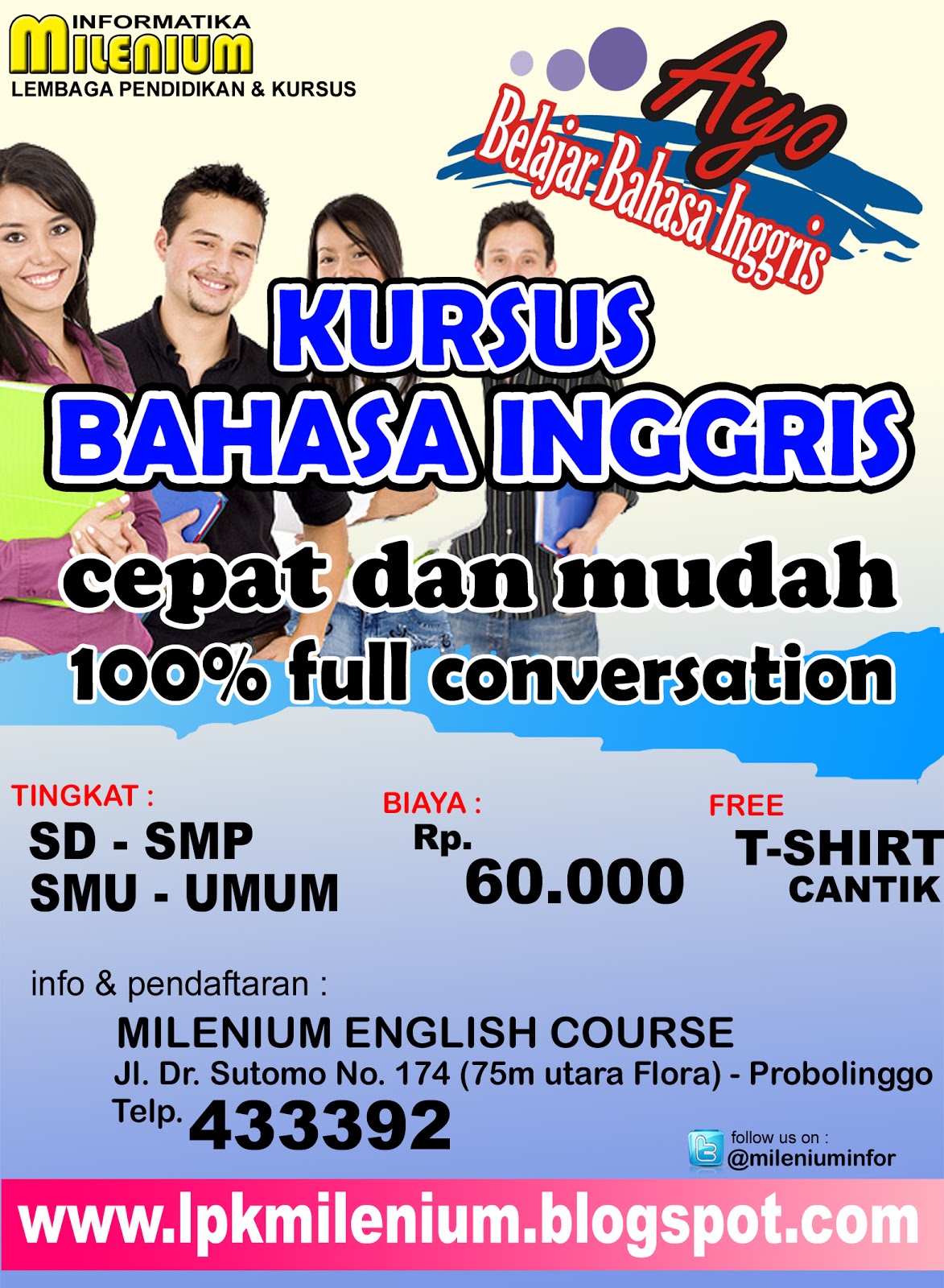 Lkp Milenium Informatika Dibuka Kelas Baru Kursus Bahasa Inggris Full Conversation - Kami mengumpulkan soal dan jawaban dari tts (teka teki silang) populer yang biasa muncul di koran.
