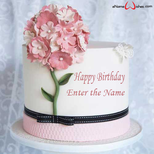 Happy Birthday Flower Cake With Name Edit - Write name on birthday cakes and cards wishes to her family.